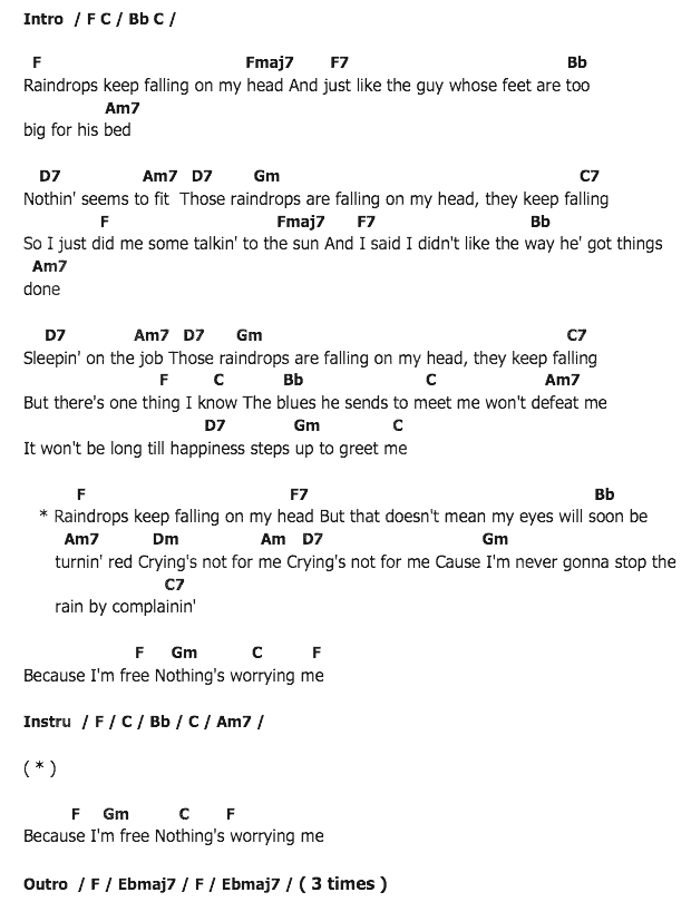 F /C /Dm /Am /B♭ /F /Gm7 /C7